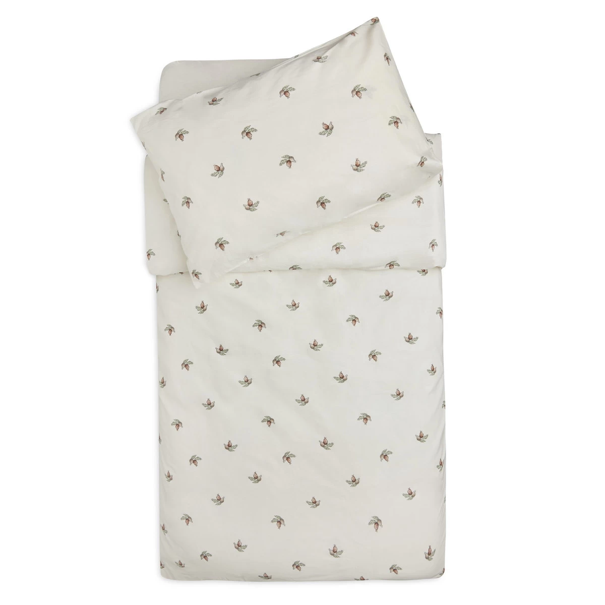 Dit overtrek en bijpassende kussensloop is met zijn formaat van 100 x 140 cm geschikt voor een ledikantje. De overtrek heeft een mooie, rozenbottel print en is een echte eyecatcher in de babykamer!